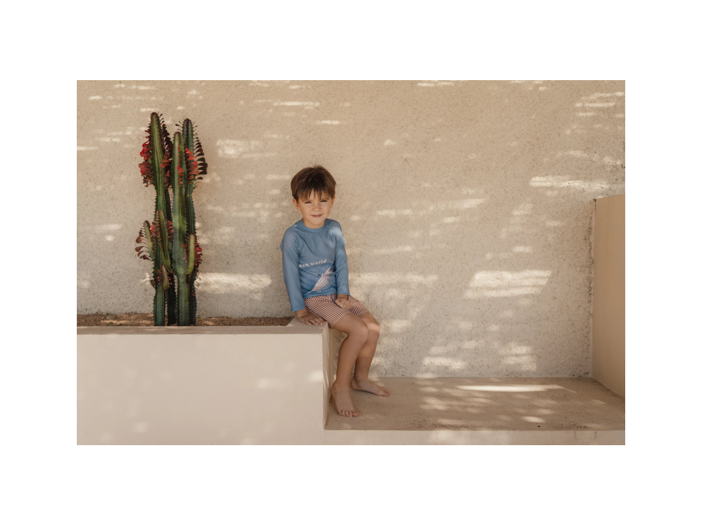 Plavky z UV ochrannej tkaniny s krásnou potlačou chránia vaše dieťa pred slnkom pri kúpaní pri mori aj doma na záhrade. Či už vaše deti milujú skákanie vo vlnách, kúpanie v bazéne alebo si rady stavajú hrady z piesku, v týchto plavkách si môžu bezstarostne užívať celý deň.