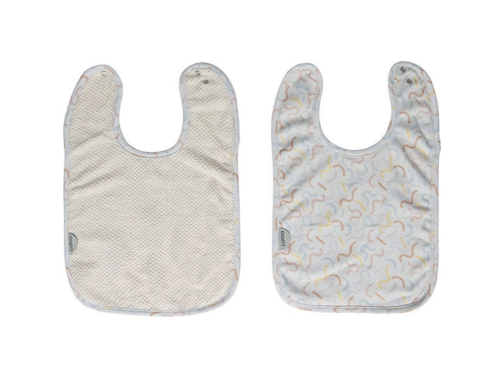 Máte radi krásne, moderné veci a nechcete za ne utrácať príliš veľa? Tak si vyberte LUMU. Sada 2 trendy podbradníčkov holandskej značky Luma Babycare. Pri každom jedle potrebujete ochrániť oblečenie vášho bábätka pred znečistením a pritom ho alebo ju nijako obmedzovať v objavovaní bohatstva chutí. Poslúžia vám trendy podbradníky, uzatvárateľné na jemné cvoky. 2 ks v balení.