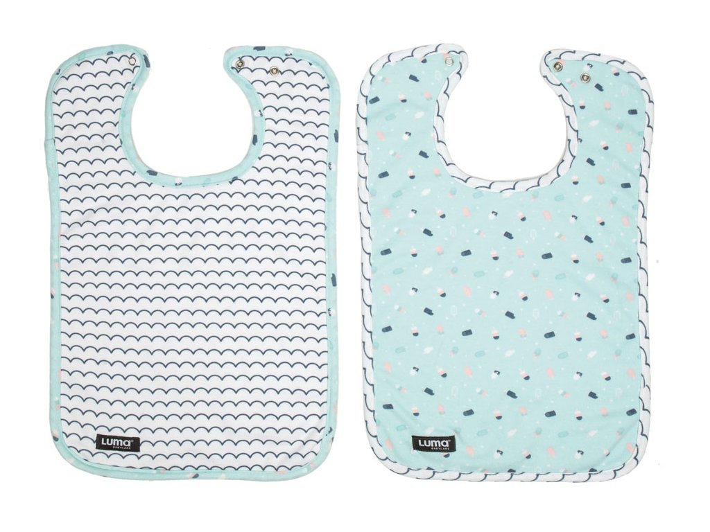 Sada 2 trendy podbradníčkov holandskej značky Luma Babycare. Pri každom jedle potrebujete ochrániť oblečenie vášho bábätka pred znečistením a pritom ho alebo ju nijako obmedzovať v objavovaní bohatstva chutí. Poslúžia vám trendy podbradníky, uzatvárateľné na jemné cvoky. 2 ks v balení.