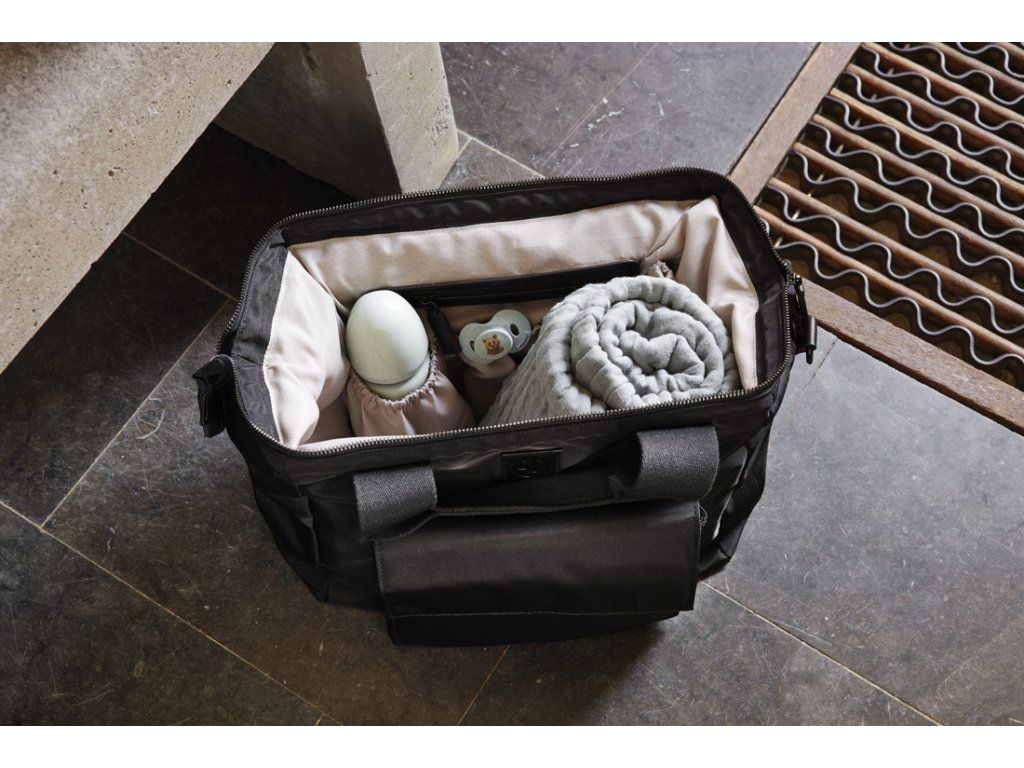 Moderní a praktická taška, do které ukryjete nejen všechny potřeby pro děti, ale i vaše osobní věci. Tašku budete ráda používat i při jiných příležitostech. Je vyrobena z kvalitního materiálu. Taška má dlouhý popruh i přídavné popruhy k připnutí na madlo kočárku. Součástí je měkká přebalovací podložka. Kapsy jsou navržené pro uložení plen, ubrousků, mobilního telefonu, laptopu atd. V tašce je termo kapsa na lahvičku pro udržení teploty nápoje. Taška je dostatečně velká, aby se do ní vešlo všechno potřebné. Taška má zapínání na zip s kovovým rámem, díky kterému drží otevřená, aby bylo přebalování ještě snadnější.