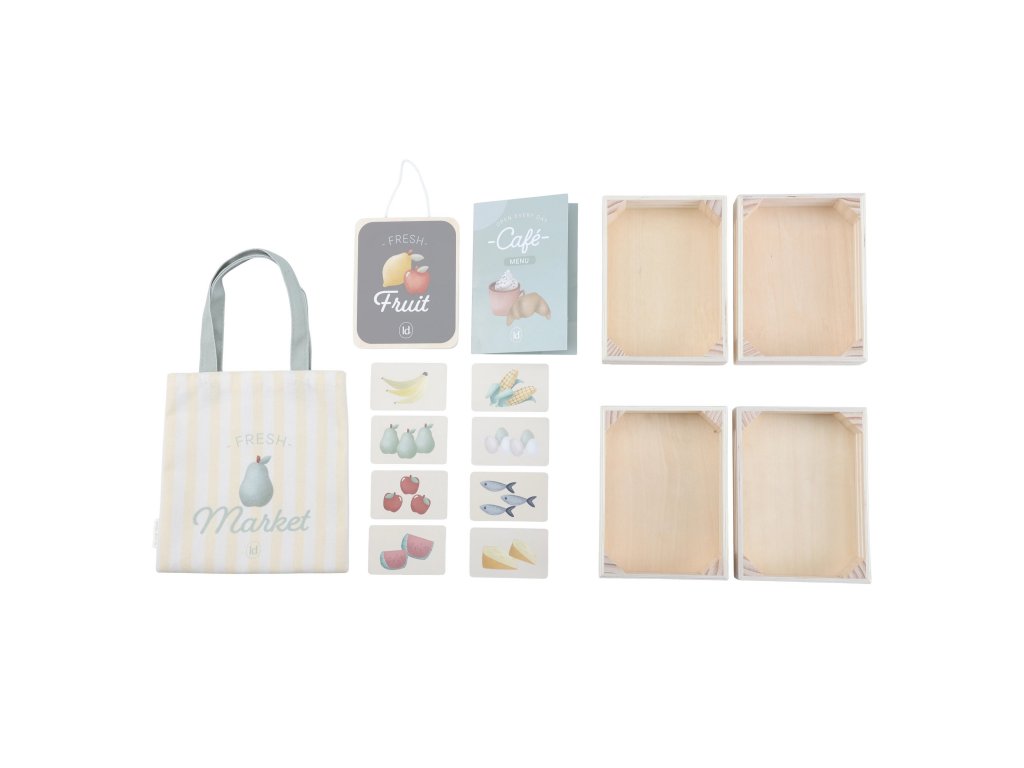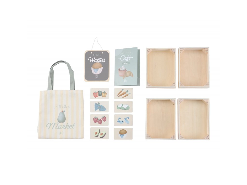 Balenie neobsahuje drevené potraviny. Stánok je možné doplniť o samostatne predávanú drevenú pokladňu, stojan s cukrovinkami, krájaciu zeleninu a ovocie a pod.