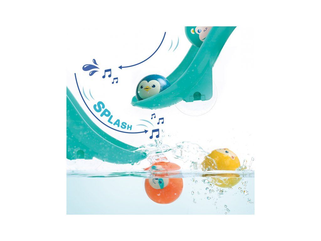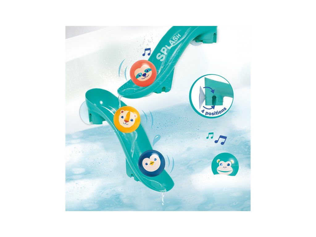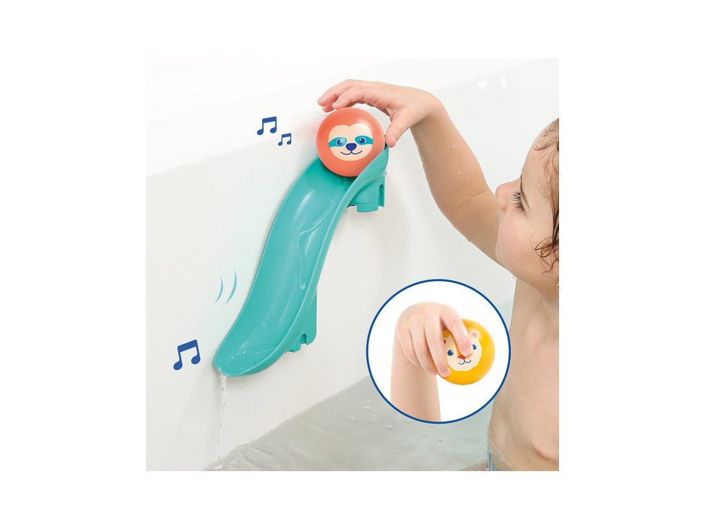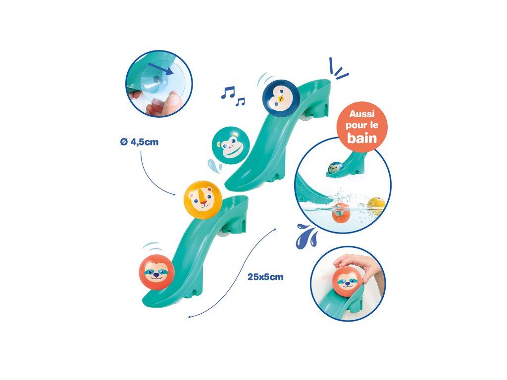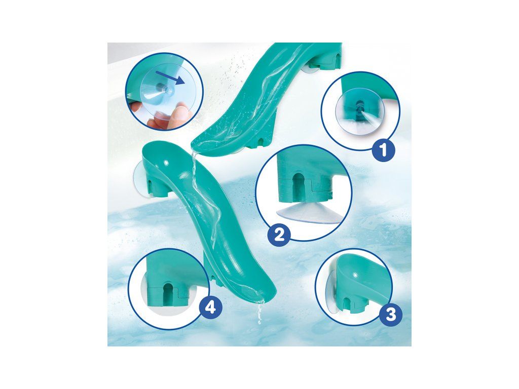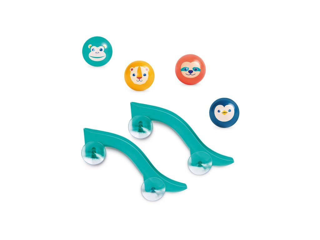 Tobogány s loptičkami do vane premenia každé kúpanie na zábavnú vodnú dráhu, ktorú si dieťa môže samo zostaviť a meniť. Vďaka silným prísavkám sa jednotlivé diely ľahko upevnia na hladké povrchy (obklady, vaňu) a držia stabilne aj počas hry. Dieťa pozoruje, ako sa loptičky pohybujú po dráhe, skúša rôzne varianty a postupne chápe princíp príčina – následok. Štyri plávajúce loptičky s rolničkou pri jazde po šmykľavke jemne cinkajú a podnecujú ďalšie objavovanie.