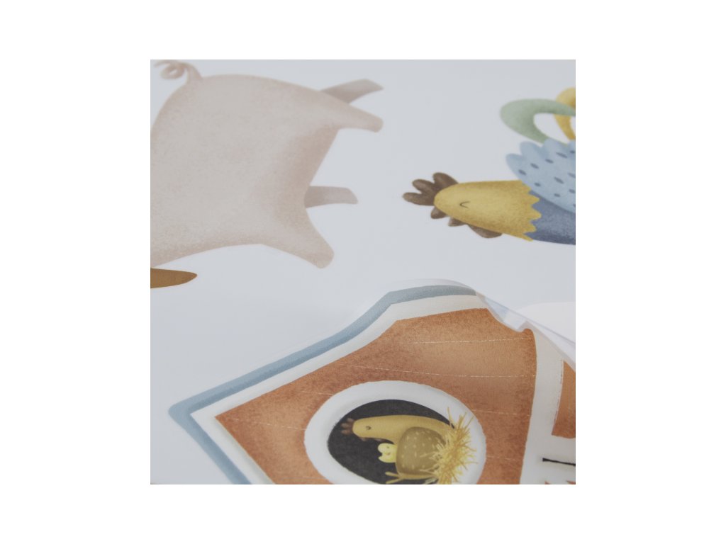Krásne samolepky v podobe motívov zo života na farme sú určené na použitie na stene, okne či akomkoľvek hladkom a rovnom povrchu. Stanú sa krásnou dekoráciou v detskej izbe a budú pomáhať rozvíjať fantáziu vášho dieťaťa. Samolepky z vinylového materiálu s matným povrchom a priehľadnými okrajmi sa ľahko aplikujú a ľahko ich aj odstránite.