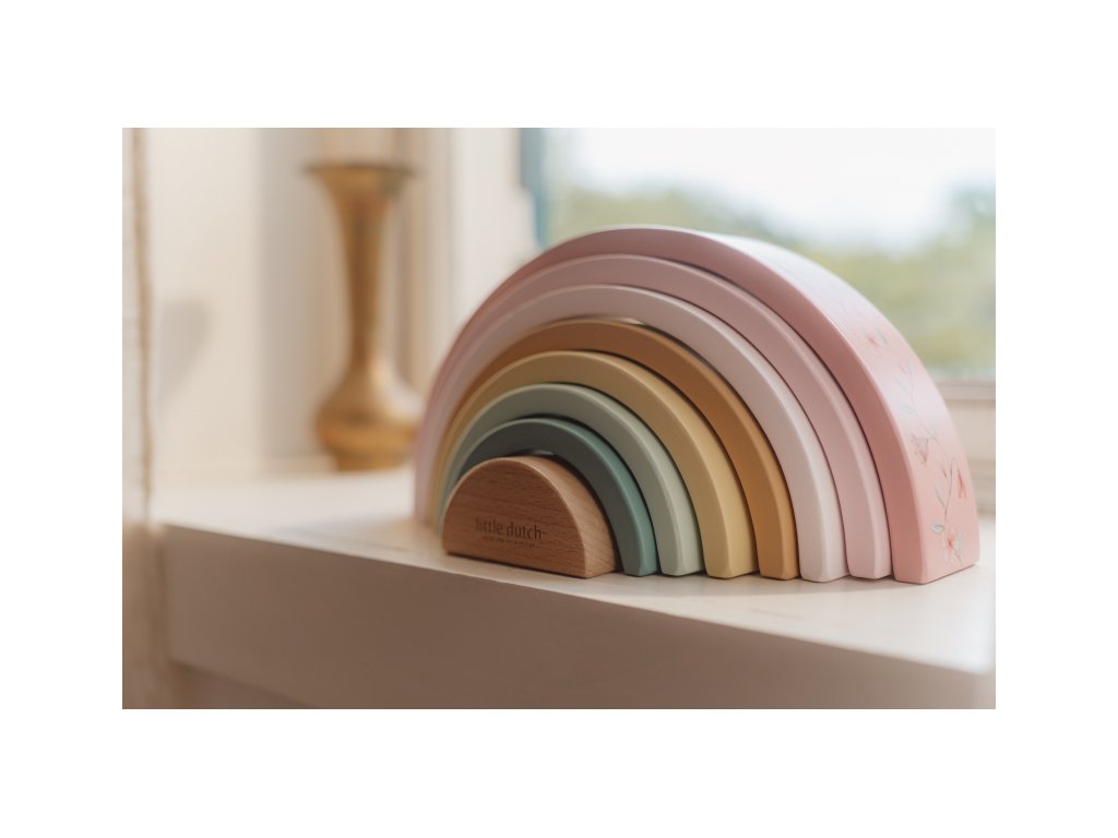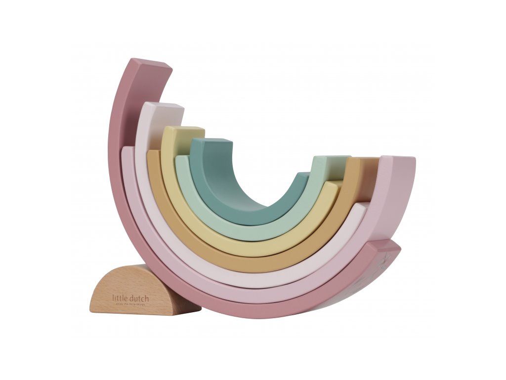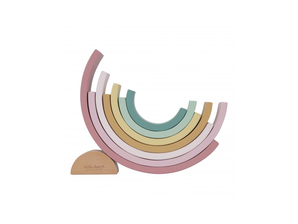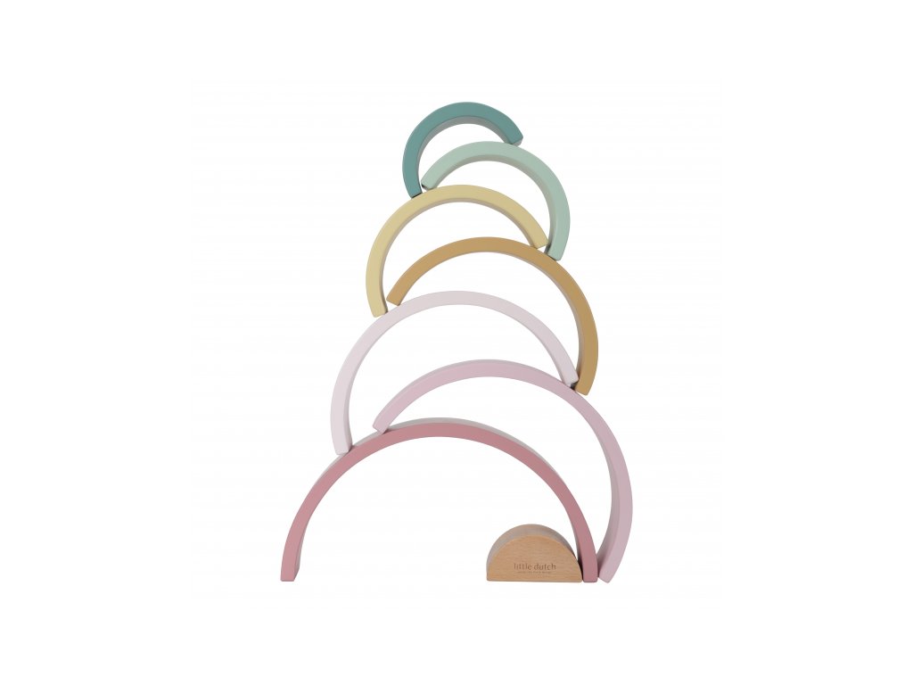 Preneste dúhu z oblohy do detskej izby! Krásna drevená skladačka v tvare dúhy umožní deťom používať svoju predstavivosť na vytváranie rôznych tvarov. Dokáže s jej pomocou postaviť napríklad železničný tunel, domček pre malé bábiky alebo most pre autá. Možností je nekonečne veľa!