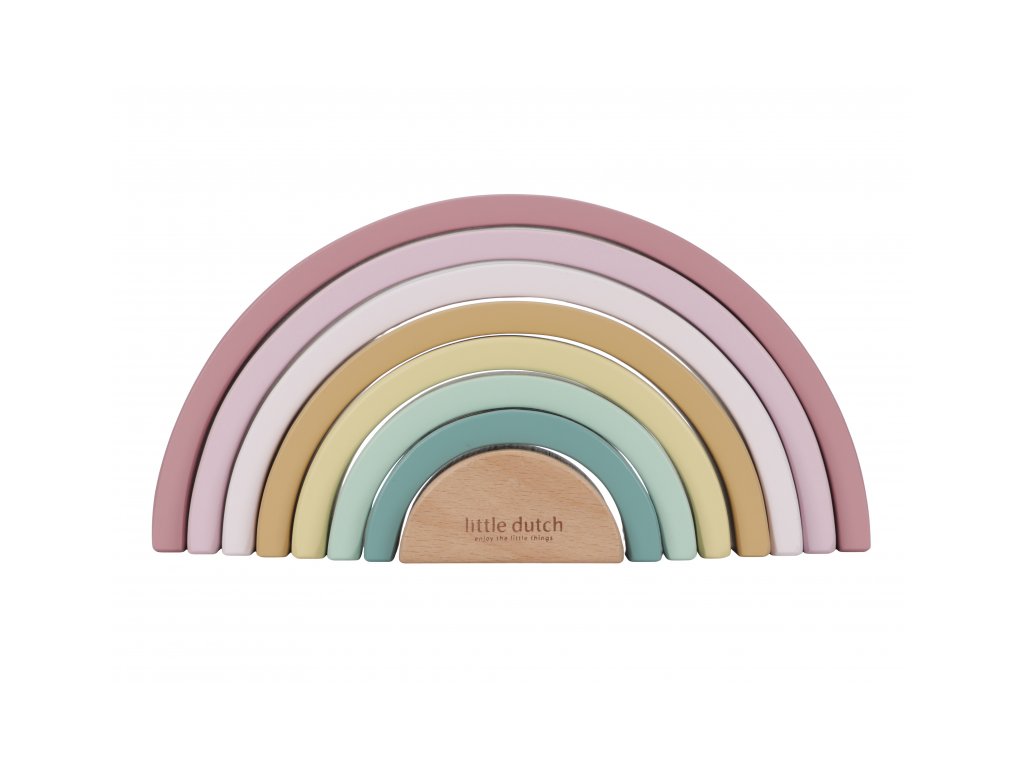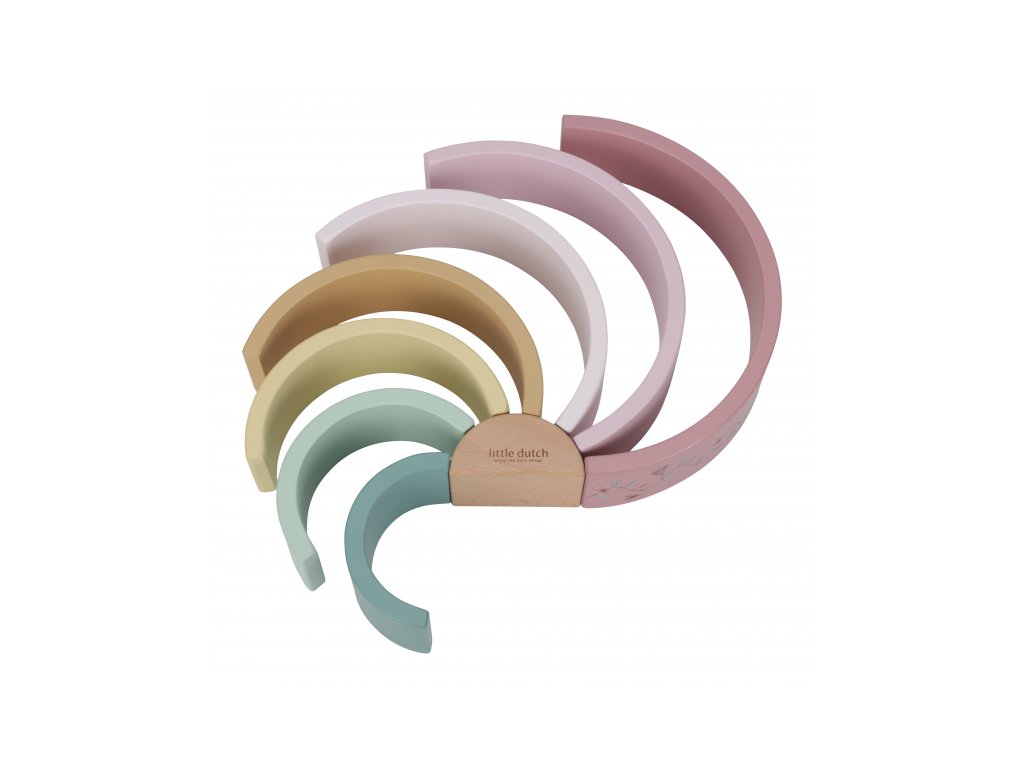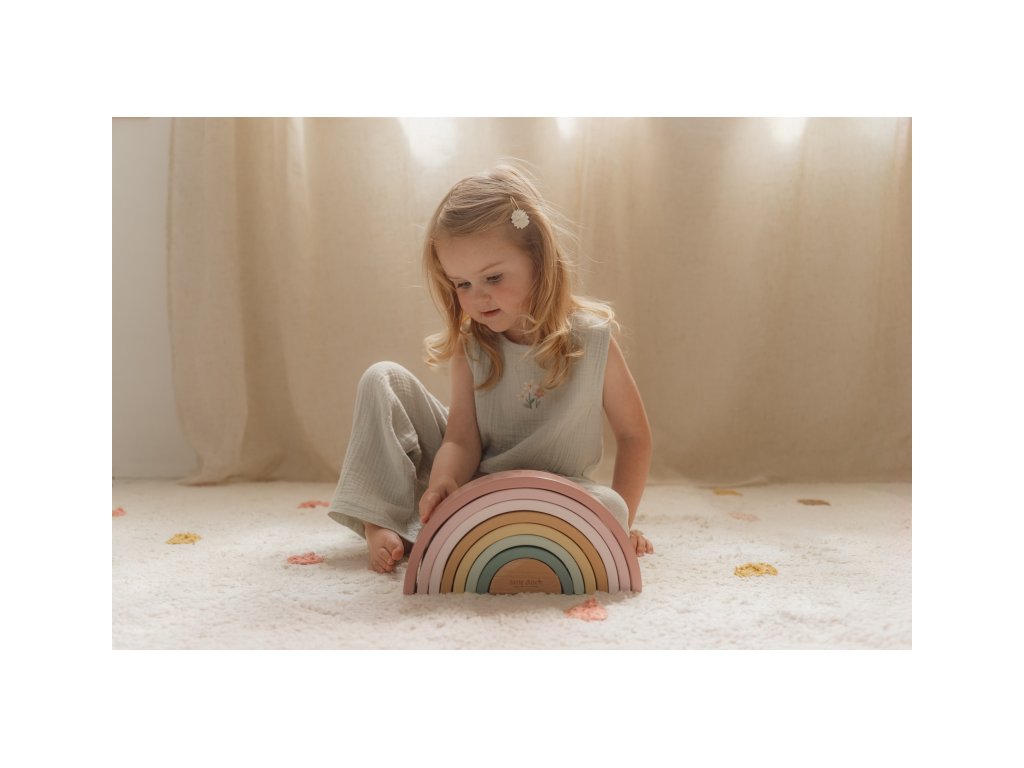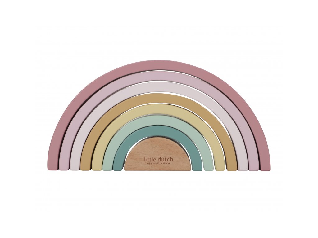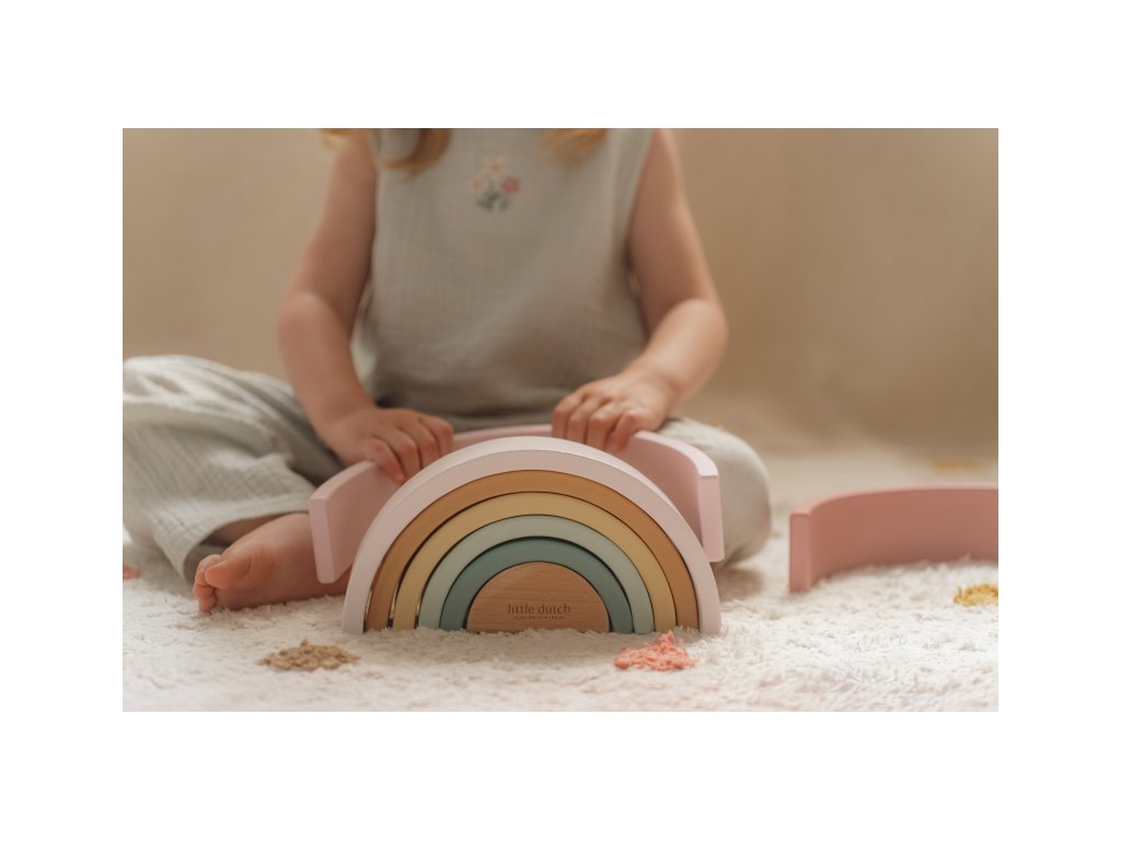 Preneste dúhu z oblohy do detskej izby! Krásna drevená skladačka v tvare dúhy umožní deťom používať svoju predstavivosť na vytváranie rôznych tvarov. Dokáže s jej pomocou postaviť napríklad železničný tunel, domček pre malé bábiky alebo most pre autá. Možností je nekonečne veľa!