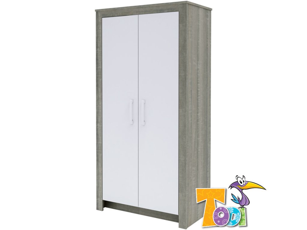 Priestranná skriňa CUBE do detskej izby sa vyznačuje čistou formou a elegantnou kombináciou sivého duba v kombinácii s plochami bielej farby s vysokým leskom.