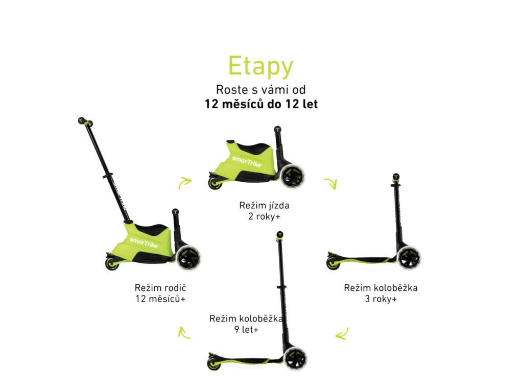 unikátna multifunkčná kolobežka určená deťom od 12 mesiacov do 12 rokov