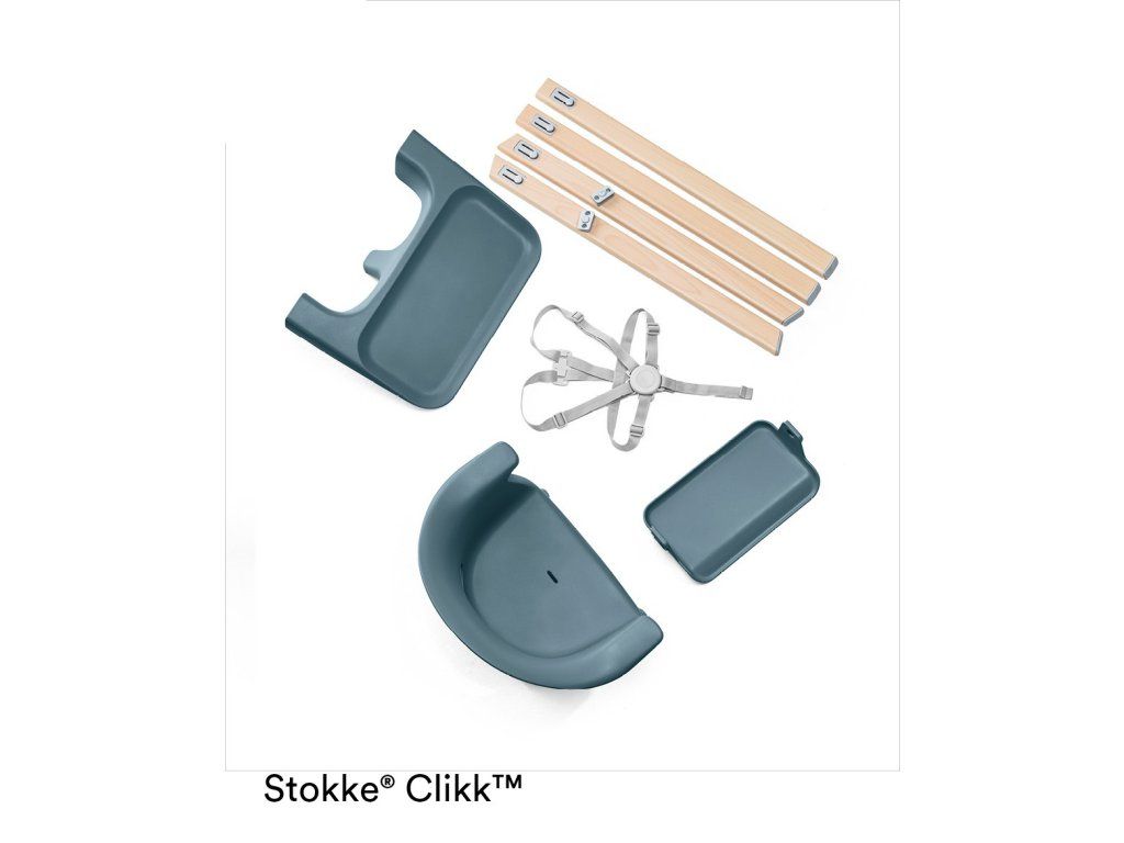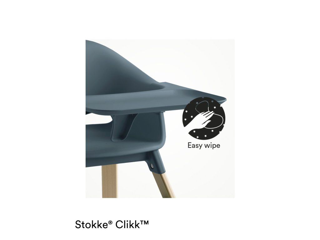- Stokke Clikka prichádza s jedálenským stolčekom a pásy pre bezpečné používanie a pokoj na duši. Pre zvýšenie pohodlia sa dá dokúpiť ešte vankúšik.