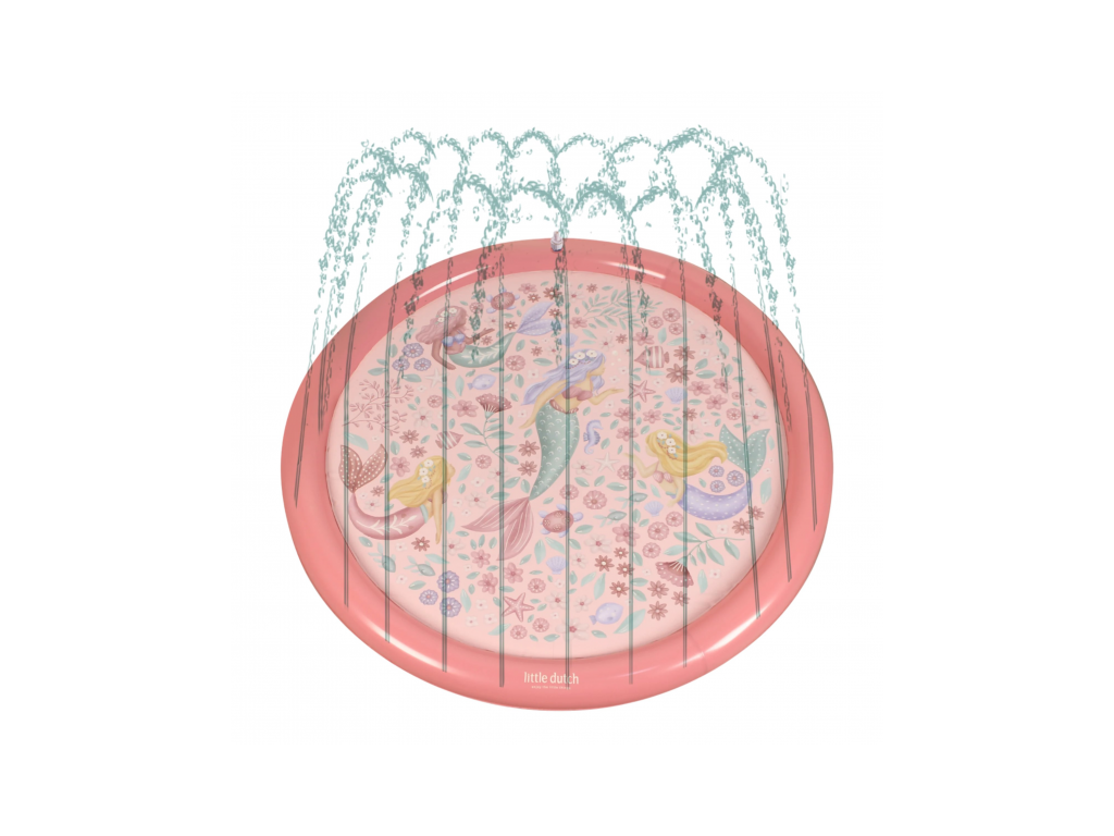 Originálna hracia podložka s vodotryskom, ktorý vytvoríte jednoducho pripojením na záhradnú hadicu s pomocou priloženej spojky. Podložka s krásnou potlačou motívov zo života morskej víly a kvetov je ideálny doplnok na záhradu počas horúcich letných dní. Deti si budú užívať behanie cez striekajúci vodotrysk aj hranie sa s vodou na podložke, ktorá funguje ako plytký bazénik.