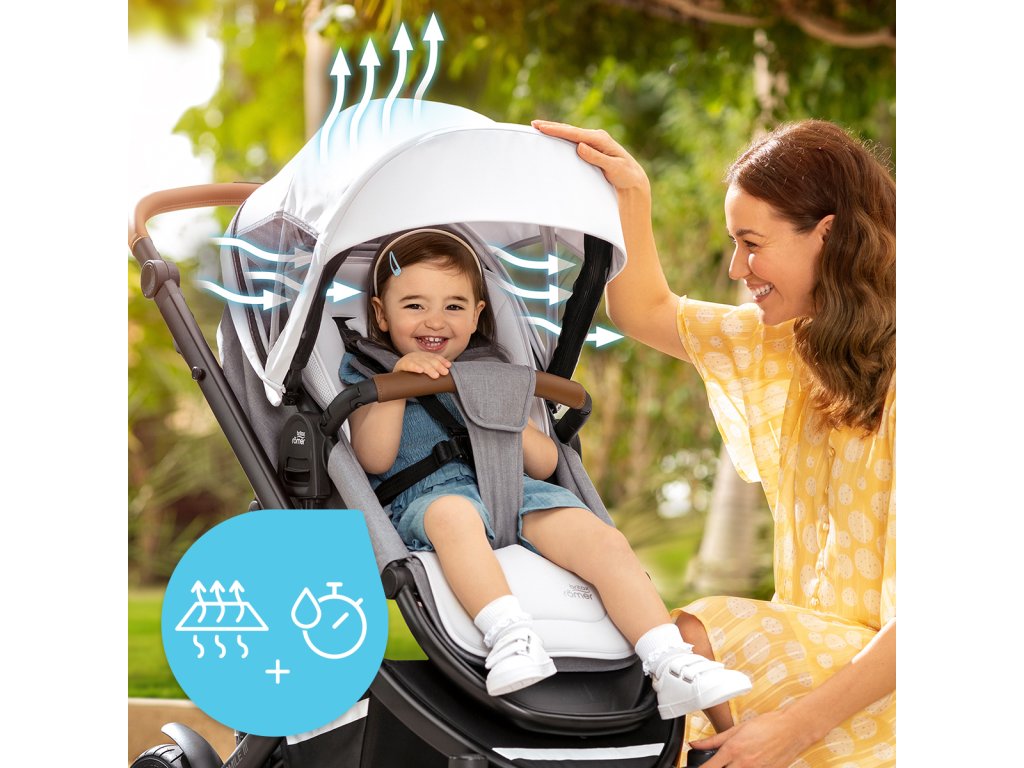 Užite si leto naplno! S extra širokou Strieškou Stay Cool, ktorú možno ešte ľubovoľne rozširovať, ostrý letný slnečný svit nepredstavuje pre vaše dieťa žiadny problém. Dômyselný systém ventilačných otvorov zaisťuje optimálnu cirkuláciu vzduchu, vďaka čomu sa teplota vnútri kočíka aj počas horkých letných dní nezvyšuje. Súčasťou striešky je aj vstavaná sieť proti hmyzu, ktorá dieťa chráni pred nezvanými návštevníkmi.