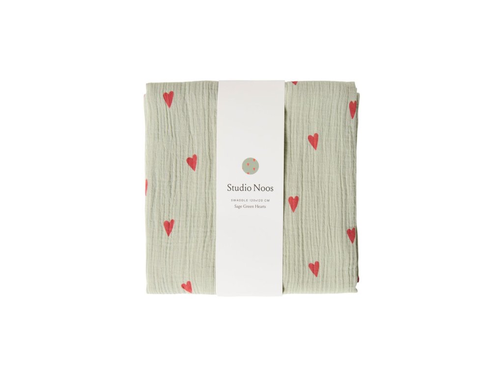 STUDIO NOOS - SWADDLE ZAVINOVAČKA Print Large Green Hearts