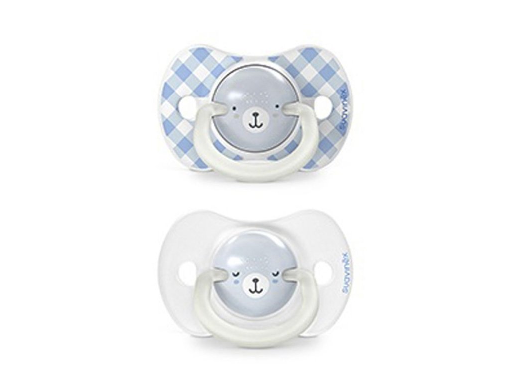 SUAVINEX Cumlík DEŇ&NOC fyziologický silikón WILD & FREE 6-18 m - 2 ks - modré