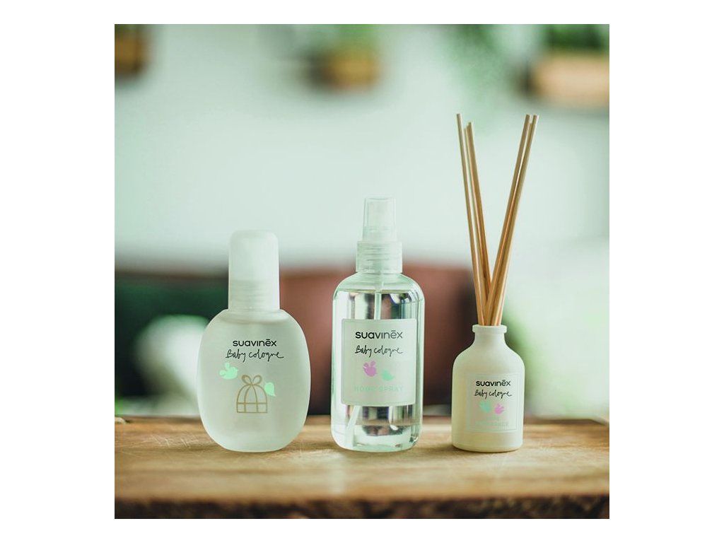 Vôňa detské kolínskej v krásnej sklenenej flaštičke s 8 tyčinkami z prírodného ratanu.