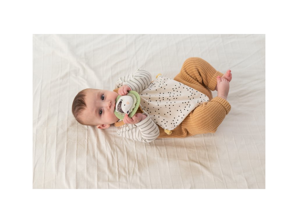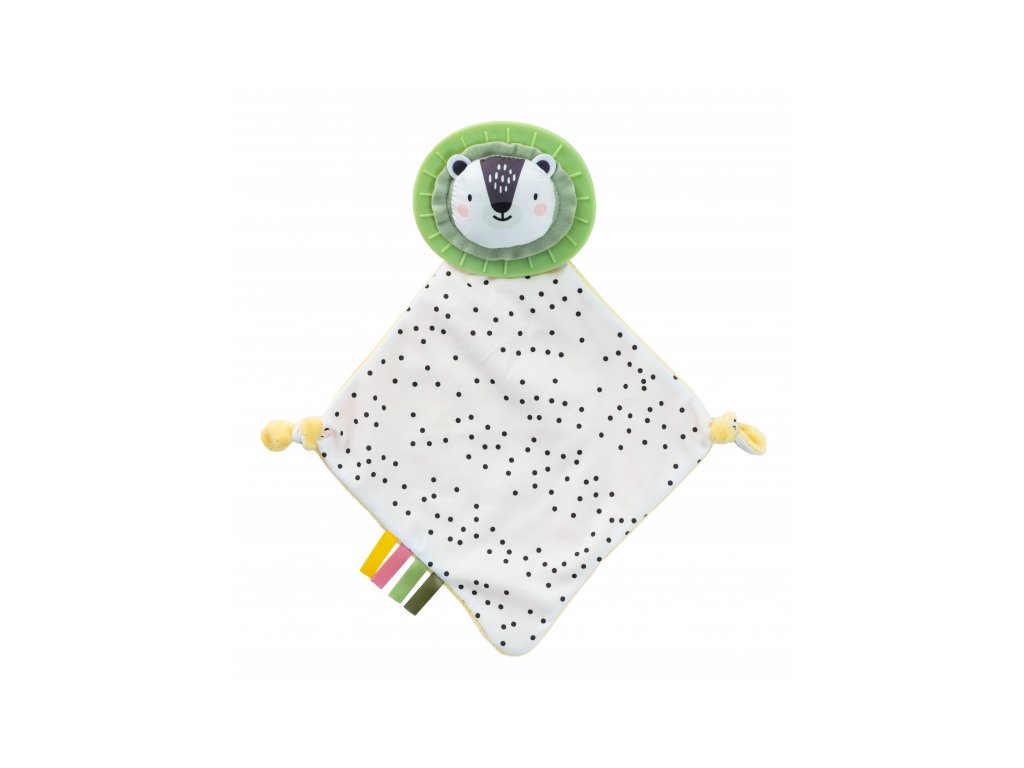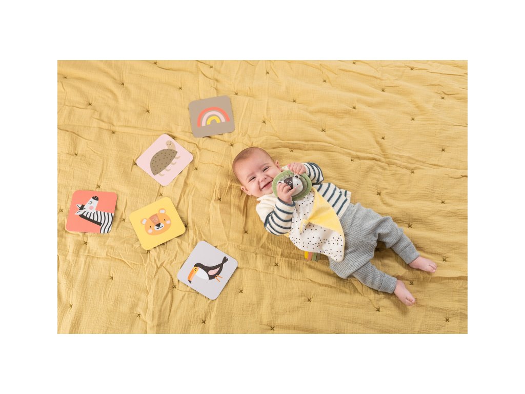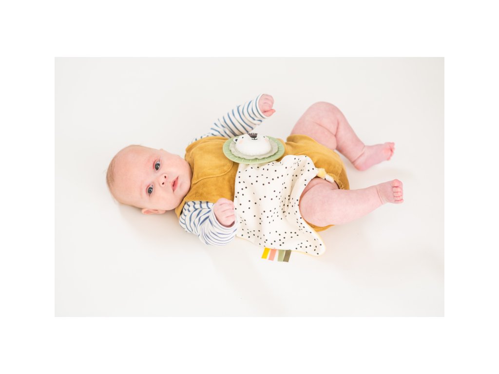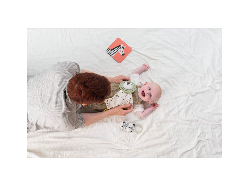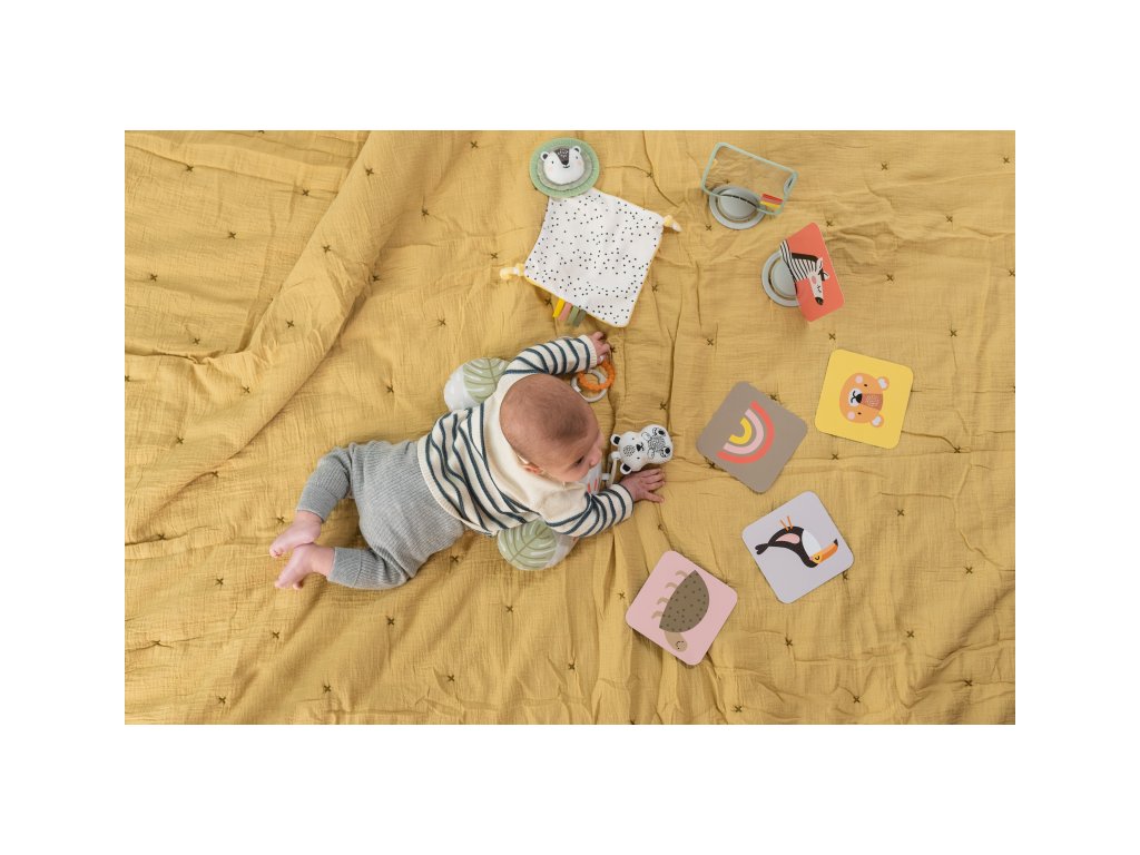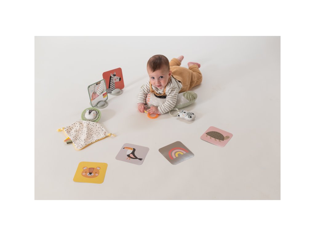 Vankúšik z mäkkého, príjemného materiálu je špeciálne navrhnutý, aby podporoval hranie dieťaťa na brušku. Súprava vysoko kontrastných obrázkov a bezpečného zrkadla s dvoma stojanmi je tiež určená na postavenie pred dieťa v polohe na brušku. Množstvo obrázkov, ktoré sada ponúka, umožňuje rodičom obrázky vymieňať a udržiavať tak dlhšie pozornosť dieťaťa. K vankúšiku je možné pripevniť aj hrkálku s hryzátkom a šuštiacu textilnú hračku v podobe roztomilého levíča.