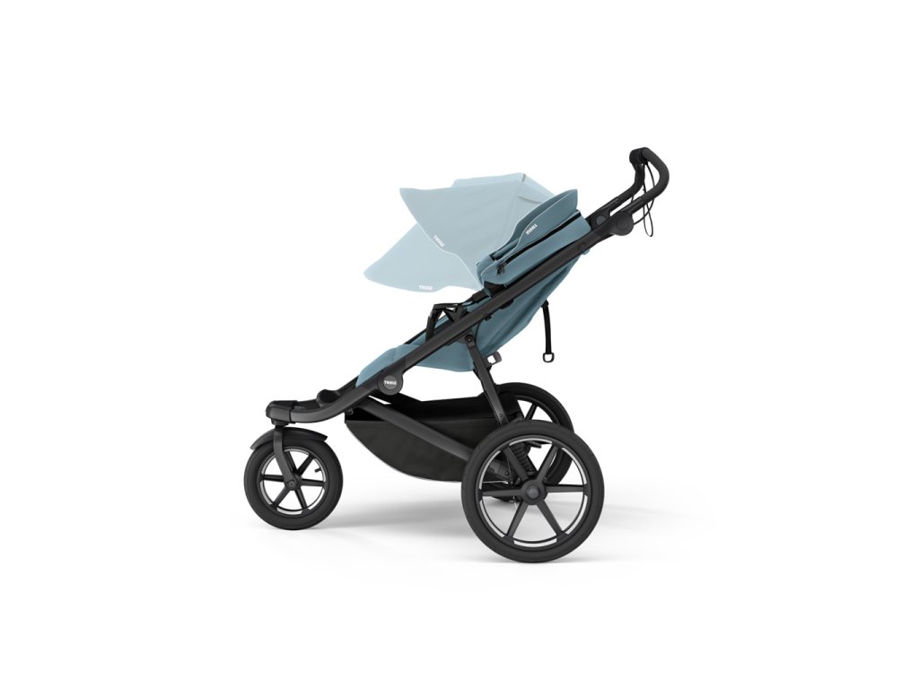 Pripravené od prvého dňa - je možné použiť od narodenia s vaničkou Thule alebo adaptérom na detskú autosedačku (predáva sa samostatne). Látku sedadla a striešky je možné odstrániť pre čistý vzhľad.
