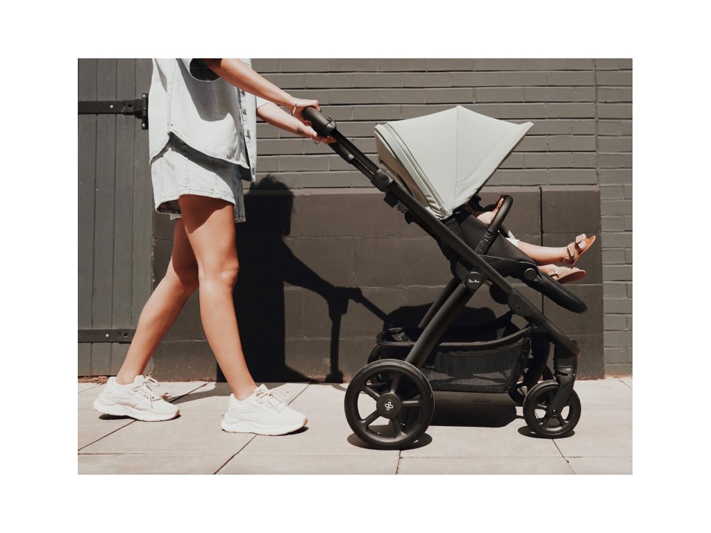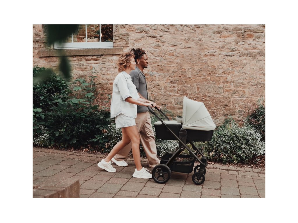 Hladkú jazdu zaručuje kvalitné odpruženie všetkých štyroch kolies aj veľké pneumatiky odolné proti prepichnutiu. Otočné predné kolesá umožňujú uzamknutie otáčania. Robustná nožná brzda sa ľahko ovláda bez rizika odrenia topánok. Teleskopická rukoväť ponúka nastavenie podľa výšky rodiča. Priestranný košík ponúka dostatok priestoru na uloženie všetkého potrebného na prechádzkach s vašim dieťaťom.