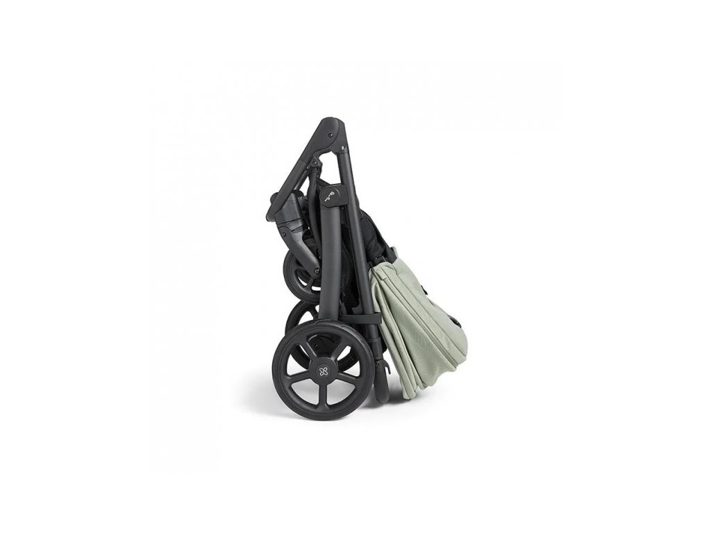 Kočík vrátane sedadla v priebehu niekoľkých sekúnd zložíte jednou rukou. Po zložení stojí samostatne na kolesách bez toho, že by sa rukoväť potiahnutá umelou kožou dotýkala podlahy.