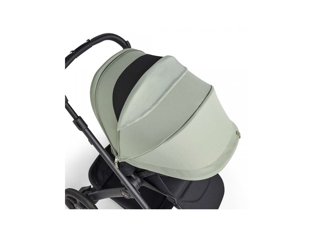 Pohodlný sedák s mäkkým polstrovaním a nastaviteľnou opierkou nôh sa dá ľahko sklopiť do úplného ľahu. Sedák je možné umiestniť po aj proti smeru jazdy. Bezpečnostné pásy Genius s magnetickou prackou šetria váš čas pri pútaní dieťaťa. Súčasťou sedadla je odnímateľné madlo pred dieťaťom. Veľká strieška s UPF50+ chráni dieťa proti vetru aj UV žiareniu. Vrecko na zadnej strane sedadla vám ponúka priestor na bezpečné uloženie drobností.