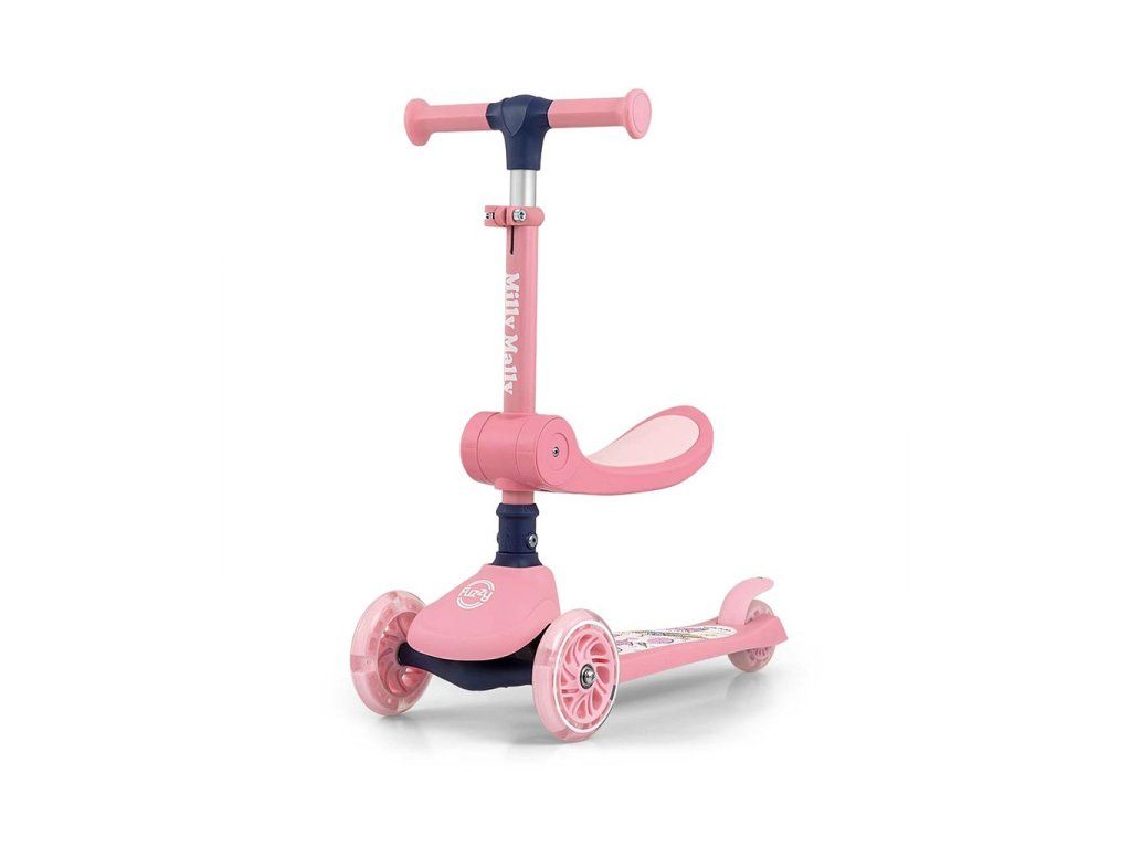 Trojkolesová balančná kolobežka-scooter so sedadlom FUZZY pre deti pink