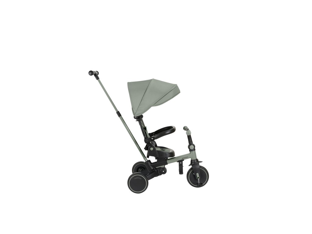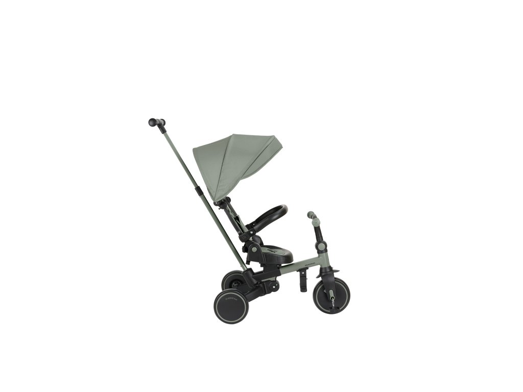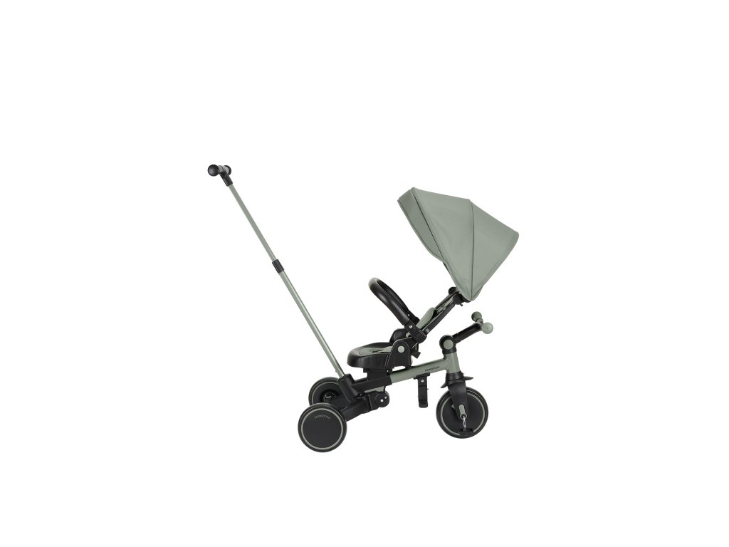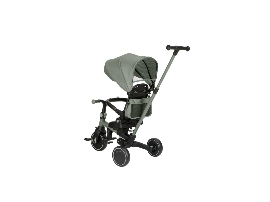 Pre maximálne bezpečie je trojkolka vybavená 5-bodovým pásom, odnímateľným bezpečnostným madlom a nastaviteľnou strieškou, ktorú je možné podľa potreby odňať. Nechýba sklápacia opierka chrbta nastaviteľná do 4 polôh, nastaviteľné riadidlá a otočné sedátko.