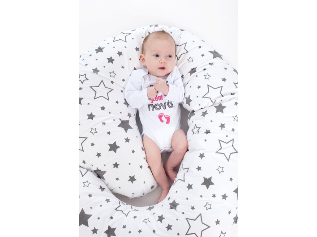 Univerzálny dojčiaci vankúš v tvare C New Baby hviezdy sivé