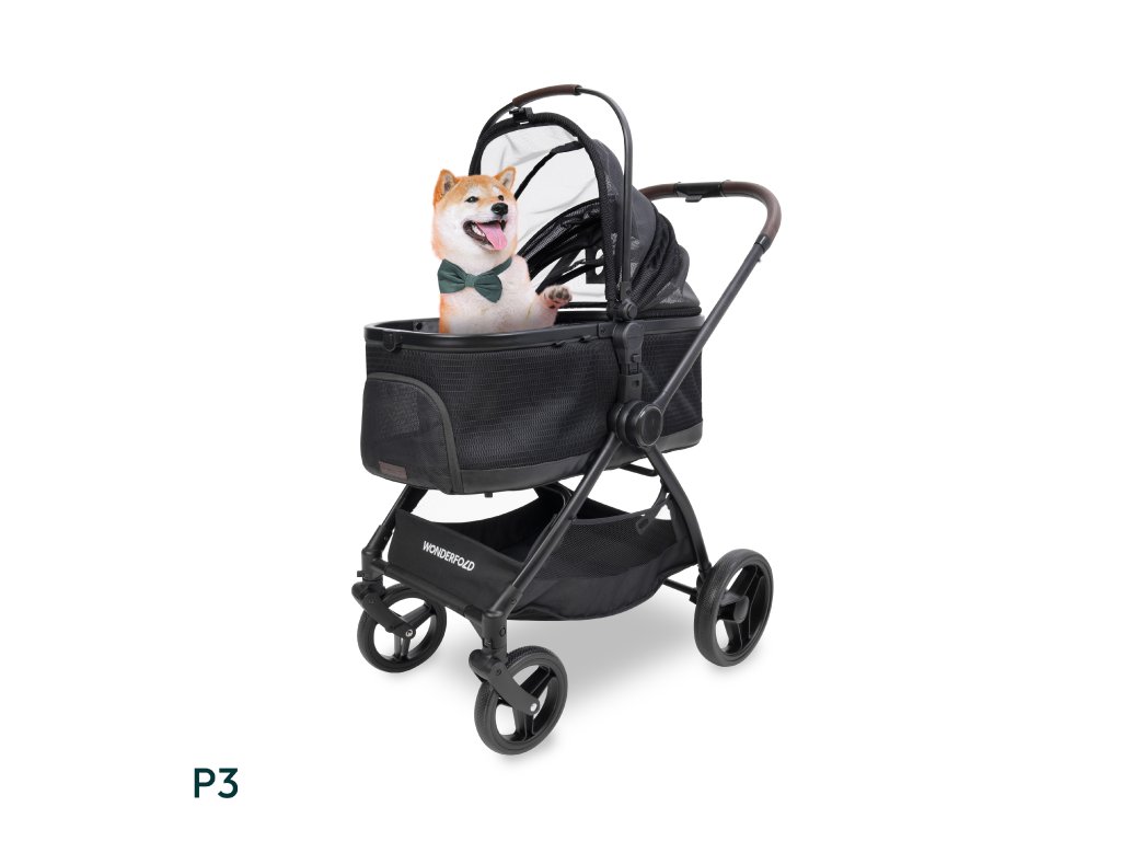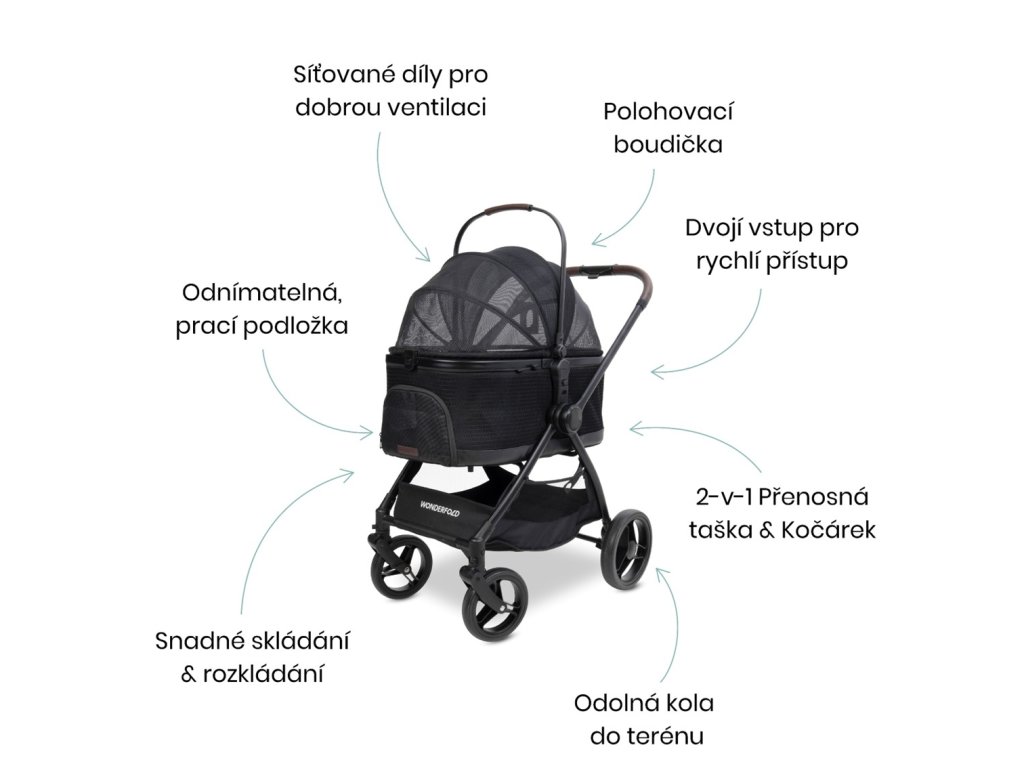 Wonderfold Pet Kočík P3 pre psy 2v1 do 22,7kg (kočík, mobilná prepravka) jet grey