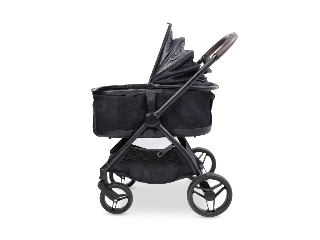 Kočík ponúka dva vstupy pre ľahký prístup, sieťované diely na korbičke a búdke poskytujú dostatok vzduchu aj počas teplých dní. Súčasťou kočíka je priestranná polohovacia búdka, ktorú je možné upevniť na oboch stranách. Kompaktné skladanie a ľahká konštrukcia vám uľahčí spoločné cestovanie, kým koženkové detaily dodajú vášmu cestovaniu štýl a eleganciu. Kočík má vyberateľnú a umývateľnú podlahu, pre dokonalé zachovanie čistoty a komfortu.