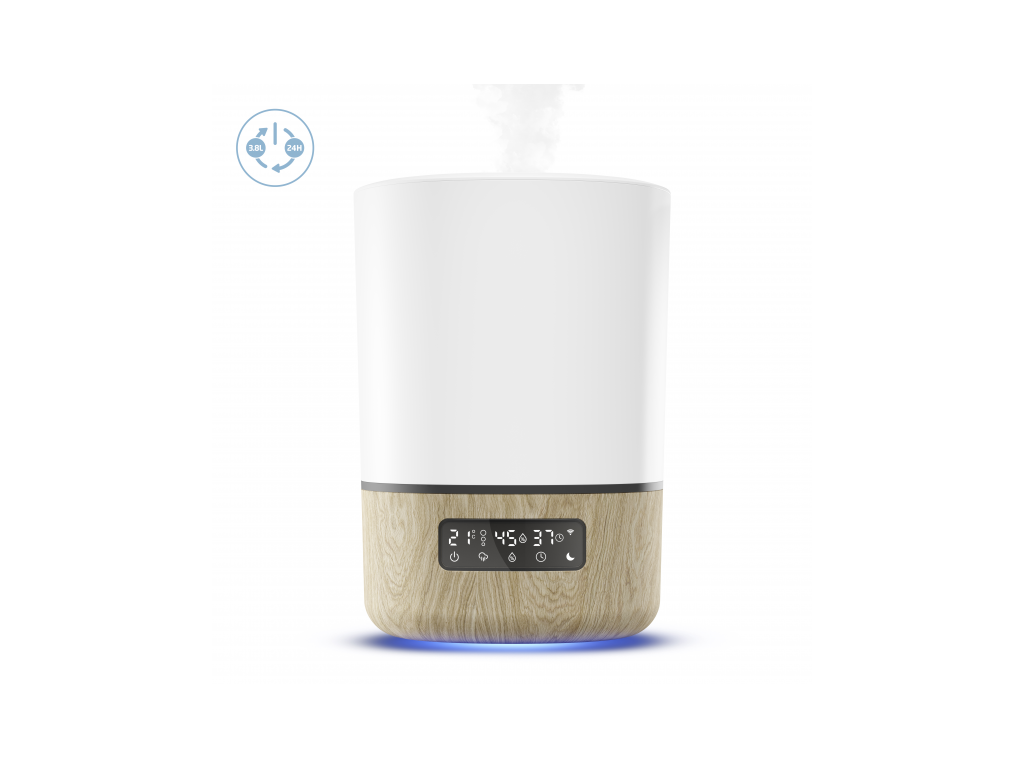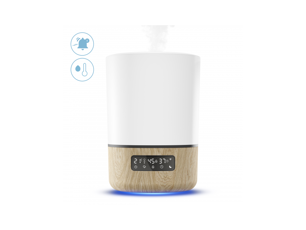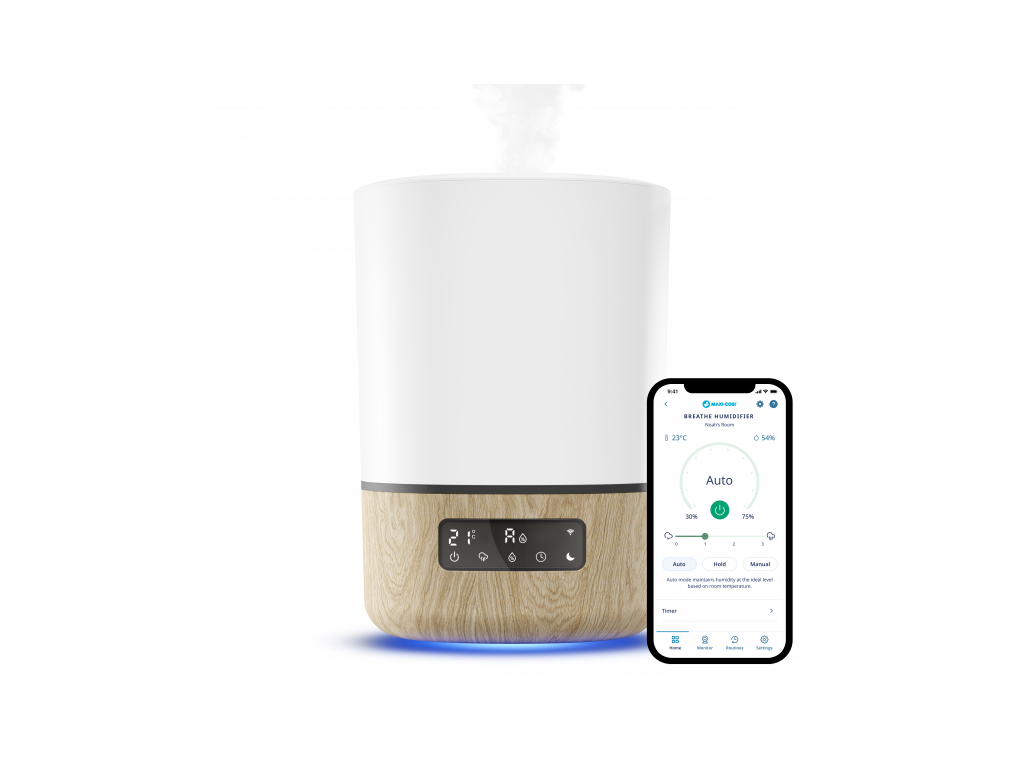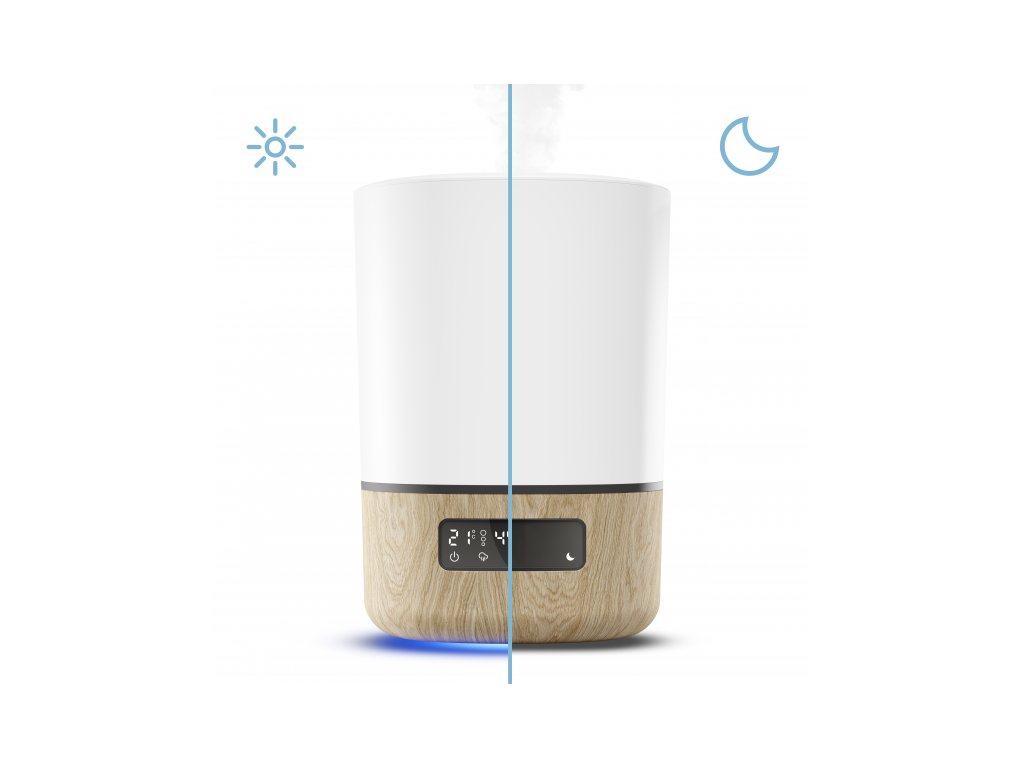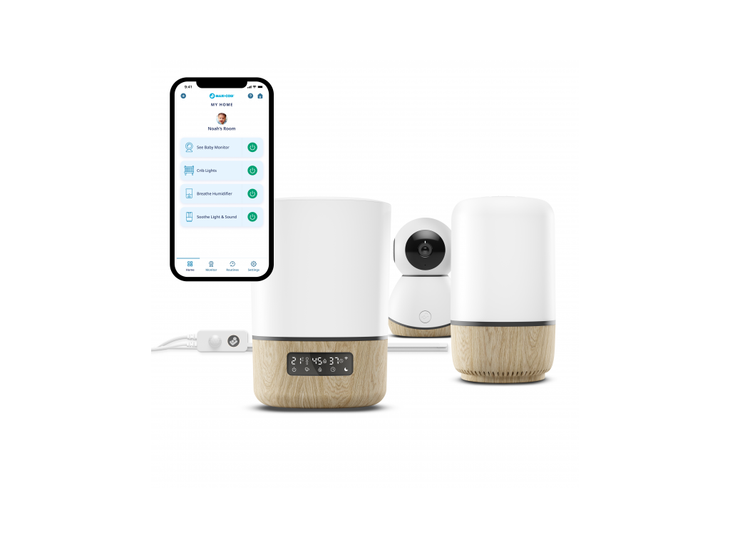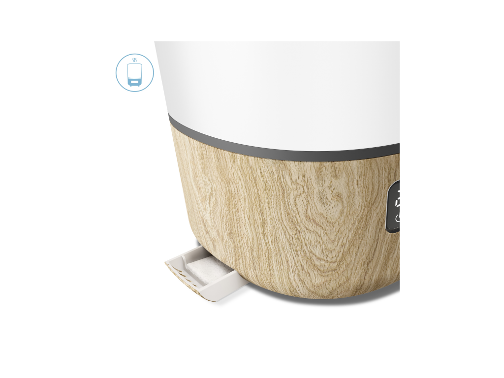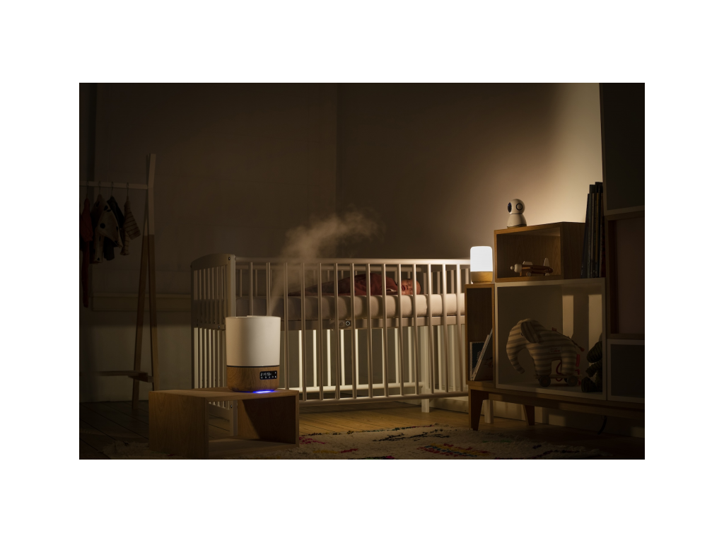 Zvlhčovač vzduchu Maxi-Cosi je šikovný zvlhčovač vzduchu do detskej izby, ktorý pomáha udržať ideálnu vlhkosť pre pokojný spánok dieťaťa. Vďaka sade senzorov zvládne pracovať plne automaticky, keď sám zvolí optimálnu vlhkosť podľa teploty v miestnosti. Ak chcete, môžete všetko nastaviť ručne: cieľovú vlhkosť, intenzitu hmly aj časovača. Všetko pohodlne nastavíte aj na diaľku cez aplikáciu Maxi-Cosi Connected Home. Prístroj funguje aj ako difuzér esenciálnych olejov pre vytvorenie príjemnej atmosféry pre odpočinok a zaspávanie.